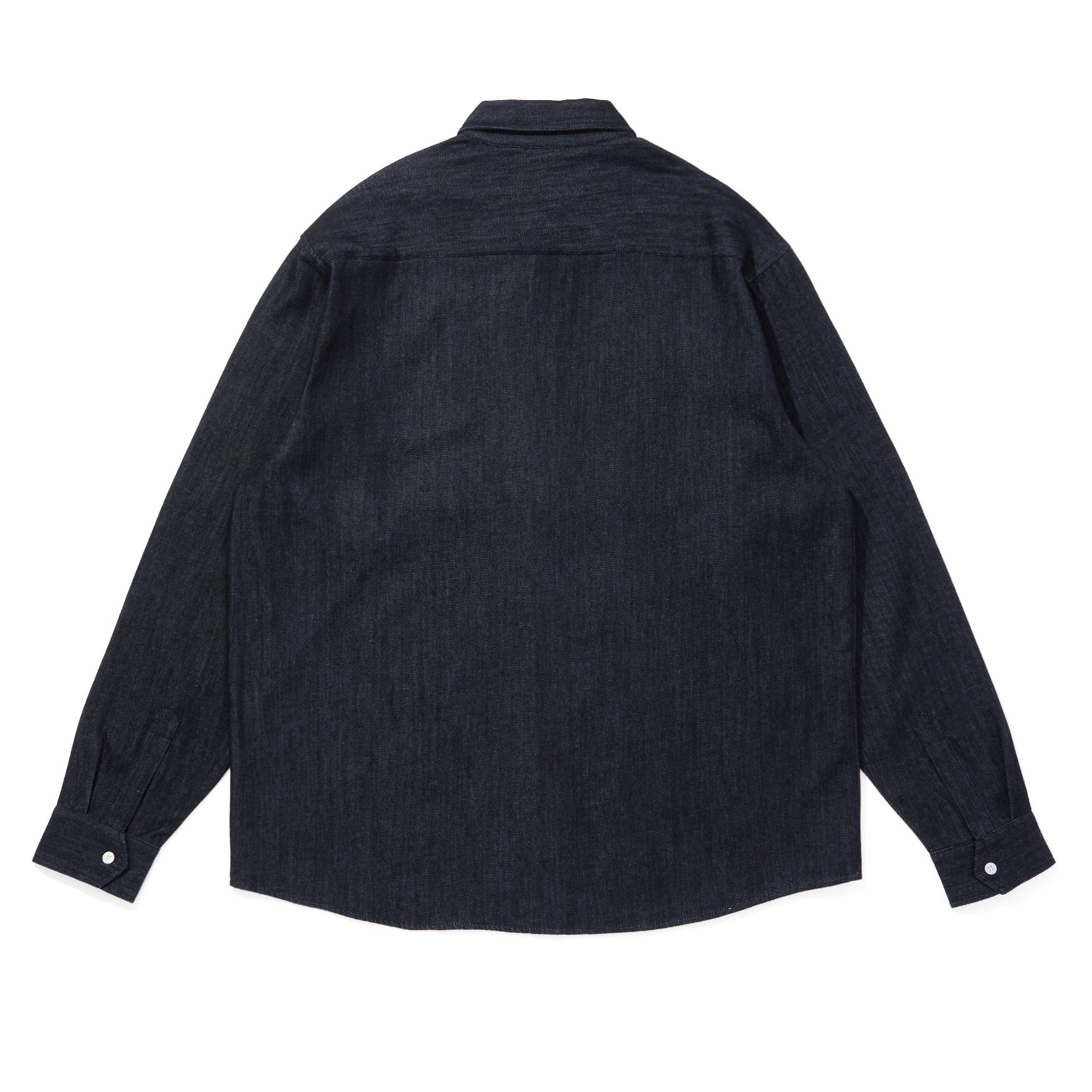 デニム生地を使用した、ボタンダウン長袖シャツです。