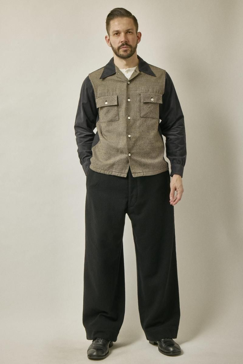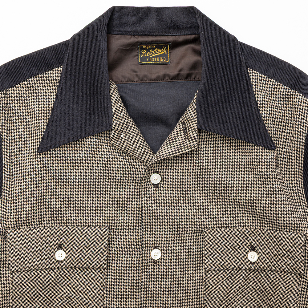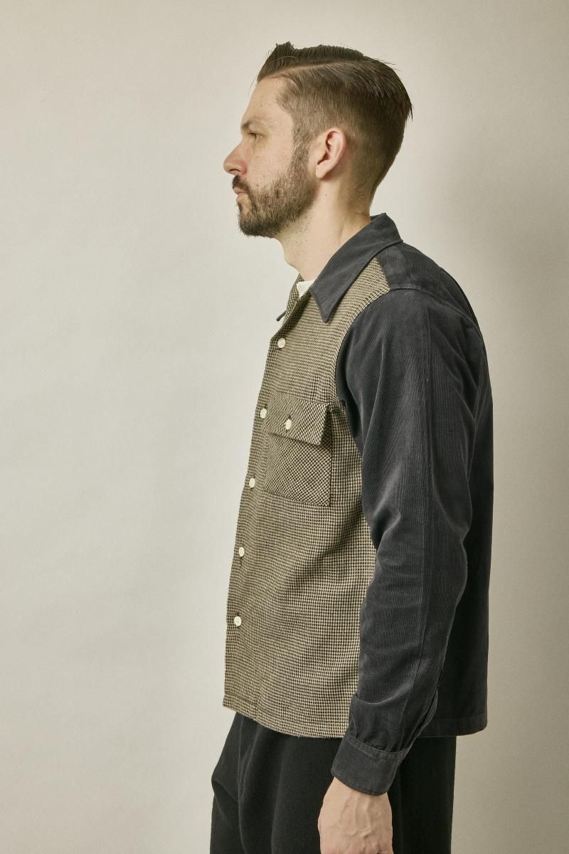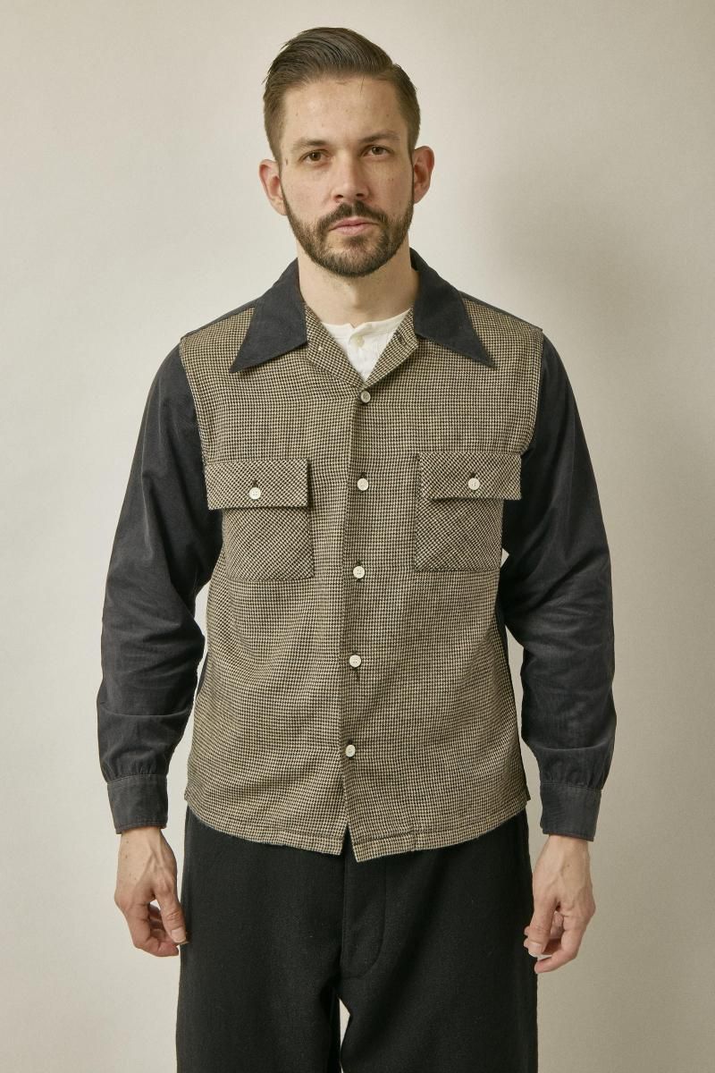 千鳥チェックとコーデュロイの切替オープンシャツです。
