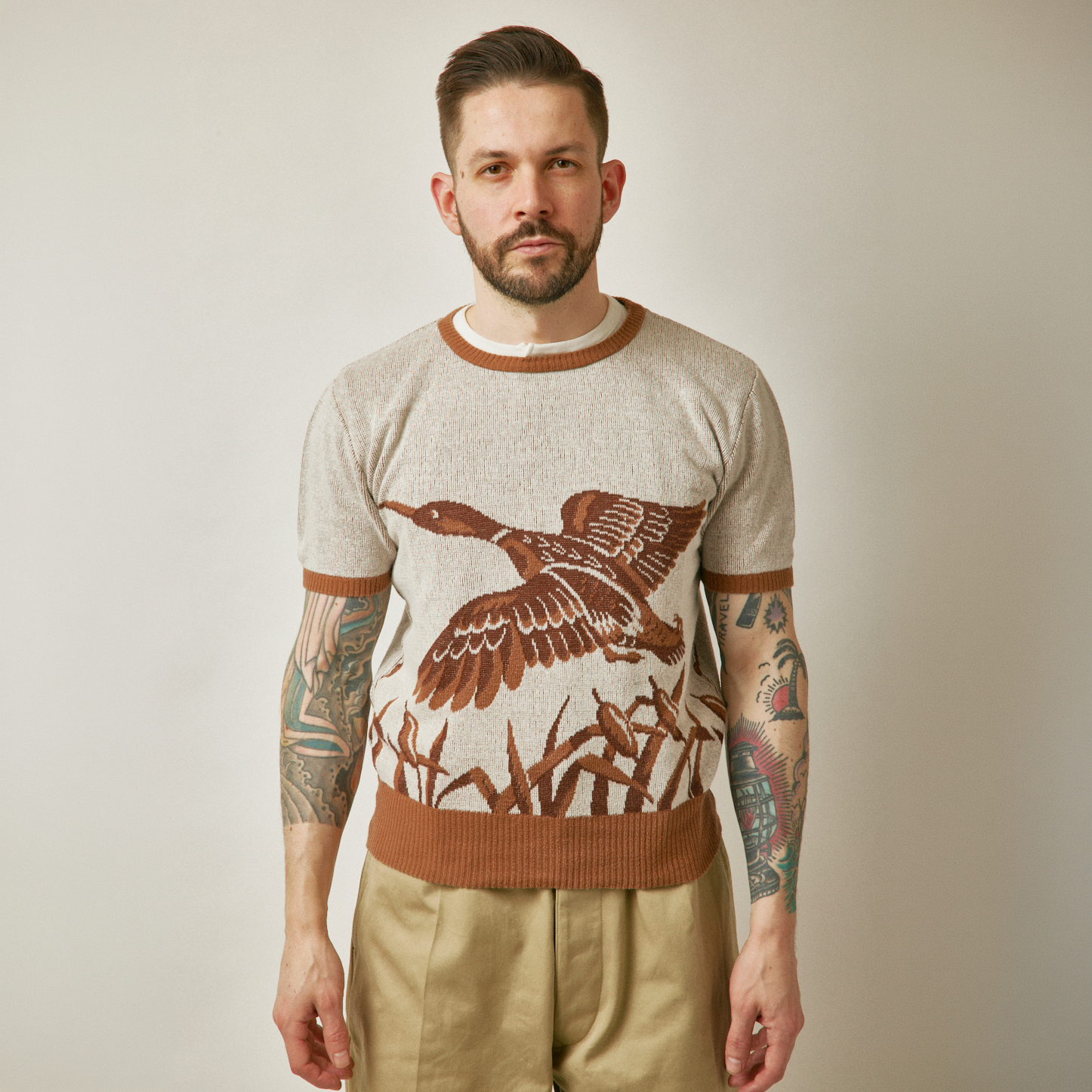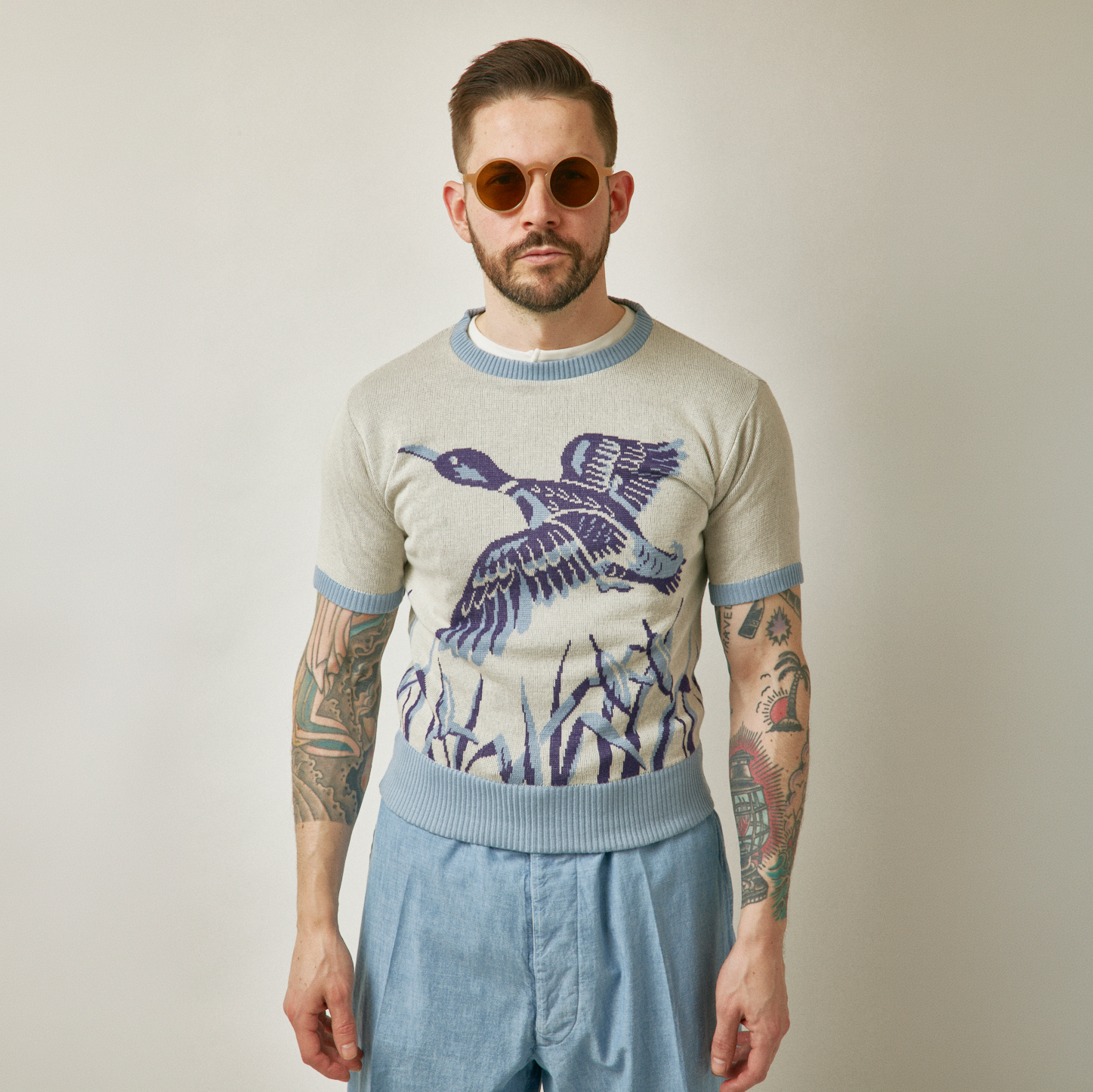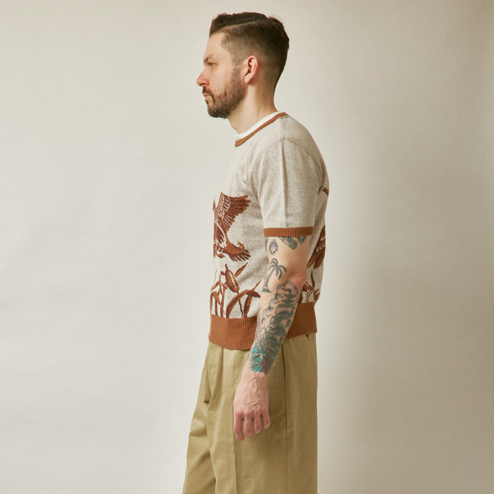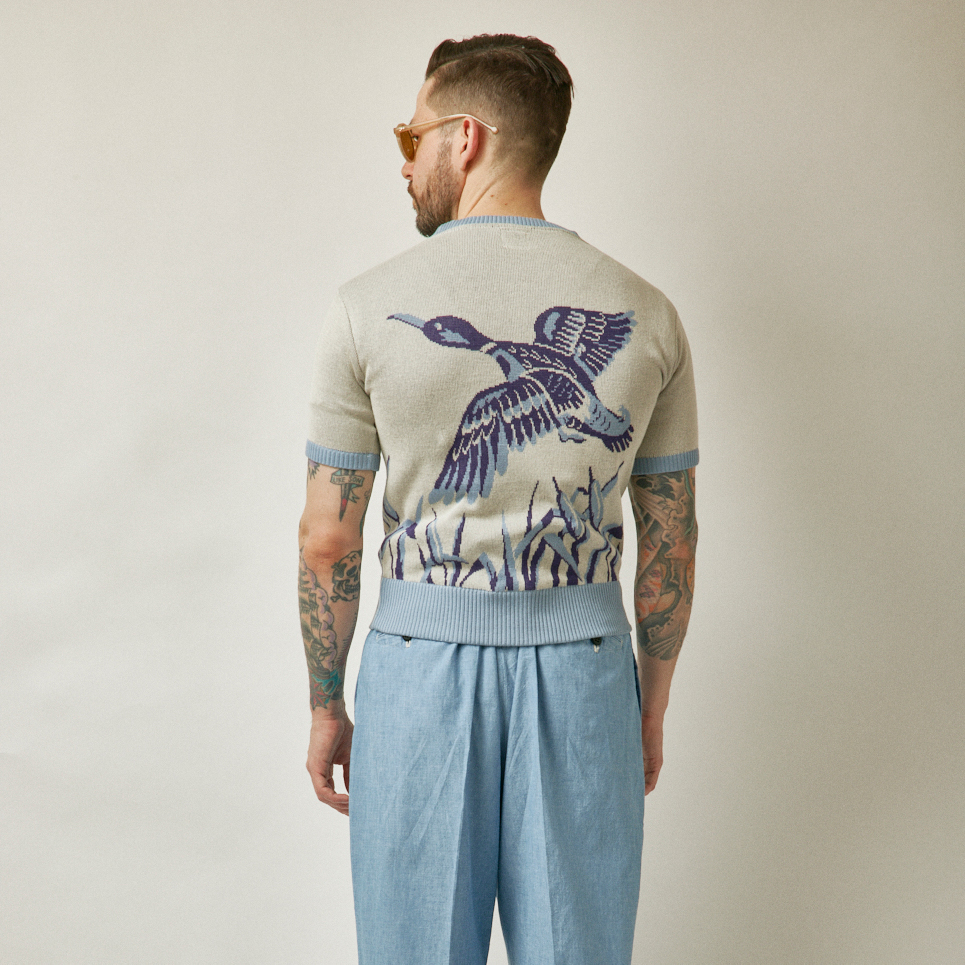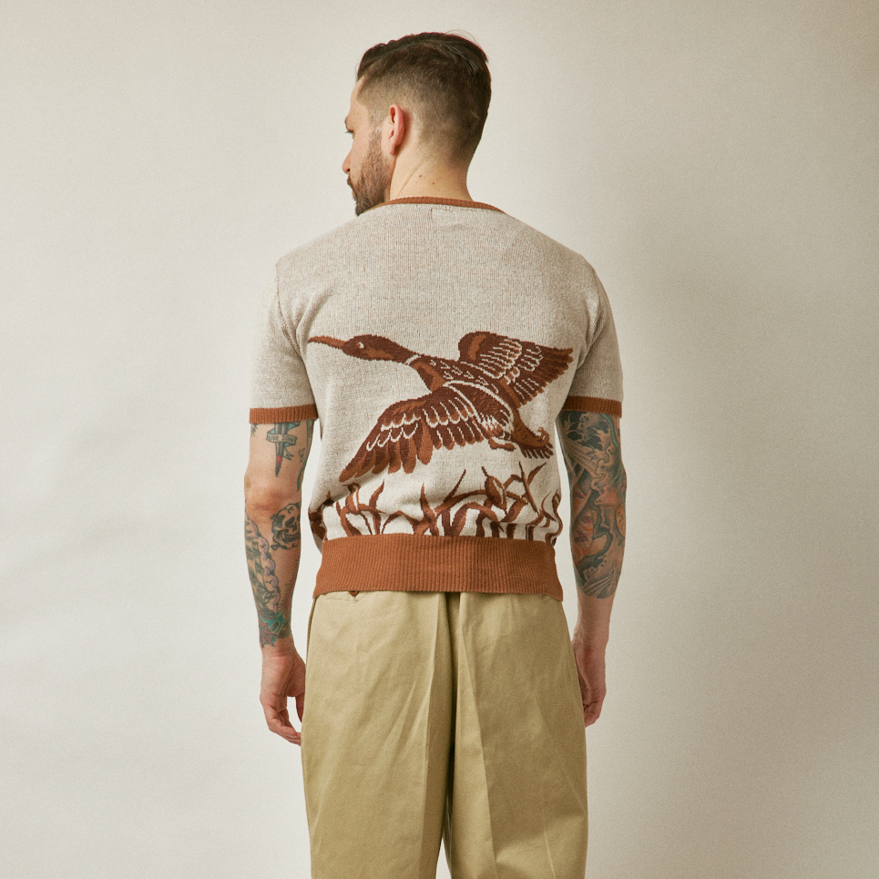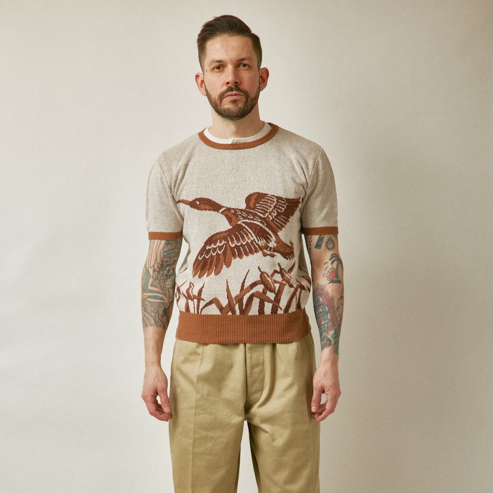 ダック柄のコットンジャガードニットです。