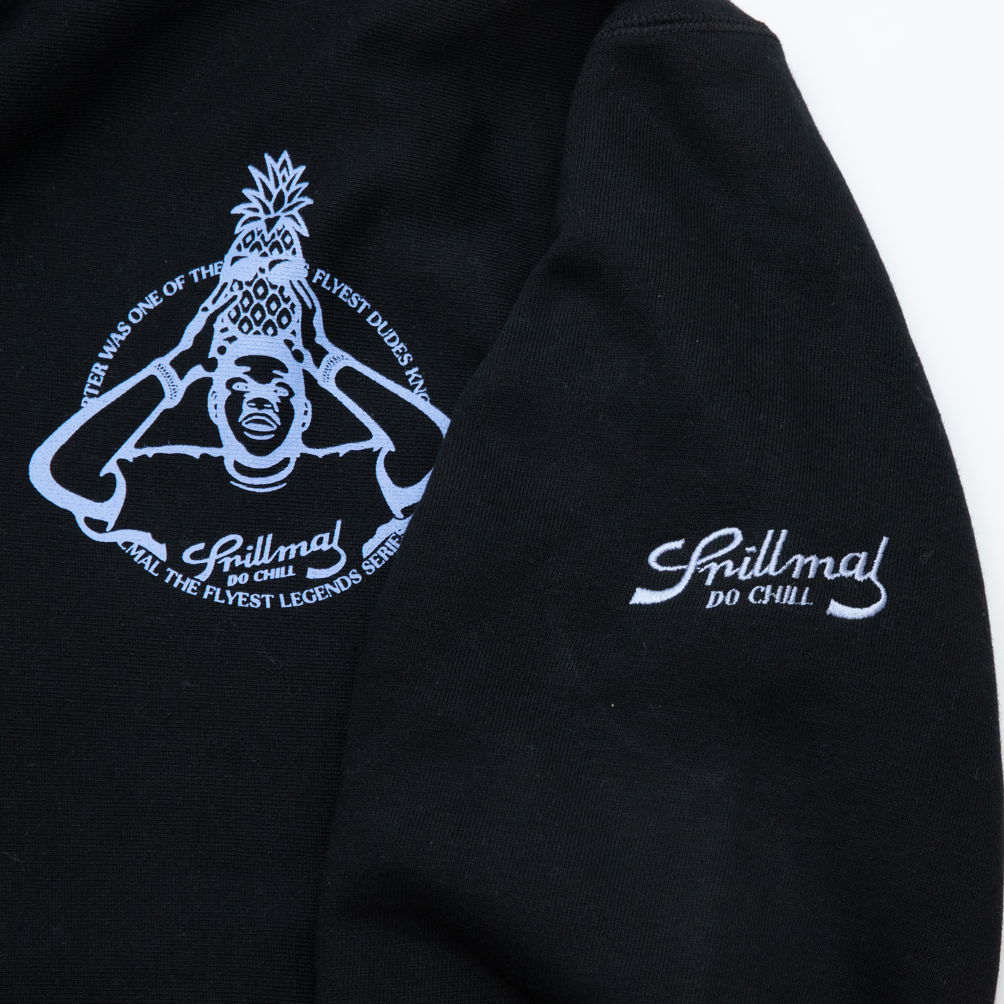 フロント胸、バックにプリント加工、左腕ロゴ刺繍加工
